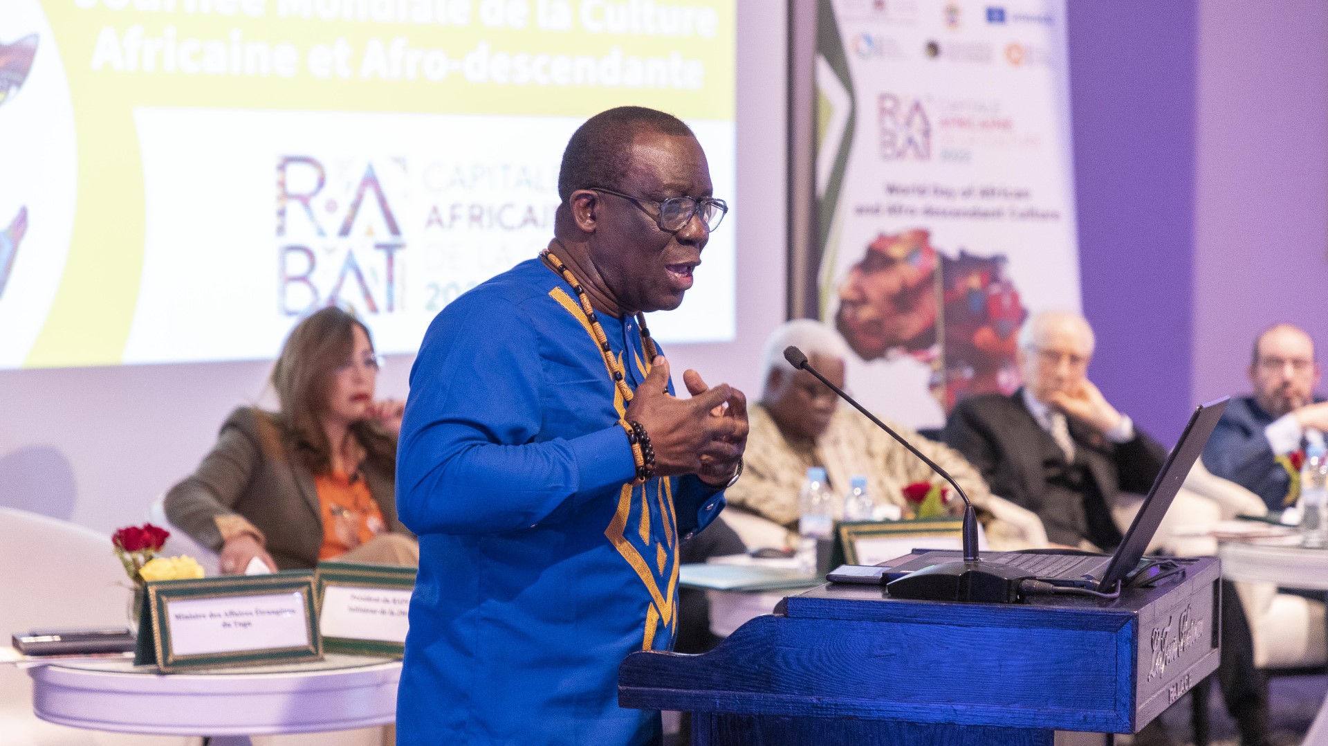 - Opening ceremony of YMCA 2023 in Rabat on January 24, UNESCO representative in Morocco, Ambassador of Togo to Morocco, H.E. Mr. Amakoé Klutse, Mr. Mohamed Ben Yacoub, Director of Arts and Curator of the celebration of Rabat African Capital of Culture, Mrs. Asmaa Rhlalou, President of the Council of the City of Rabat, Mr. Abdelkrim Bennani, President of the Ribat Al Fath Association, Mr. Ayité Dossavi, President of the African Network of Cultural Promoters and Entrepreneurs, initiator of the JMCA, and Mr. Jean Pierre Elong Mbassi, Secretary General of UCLG Africa